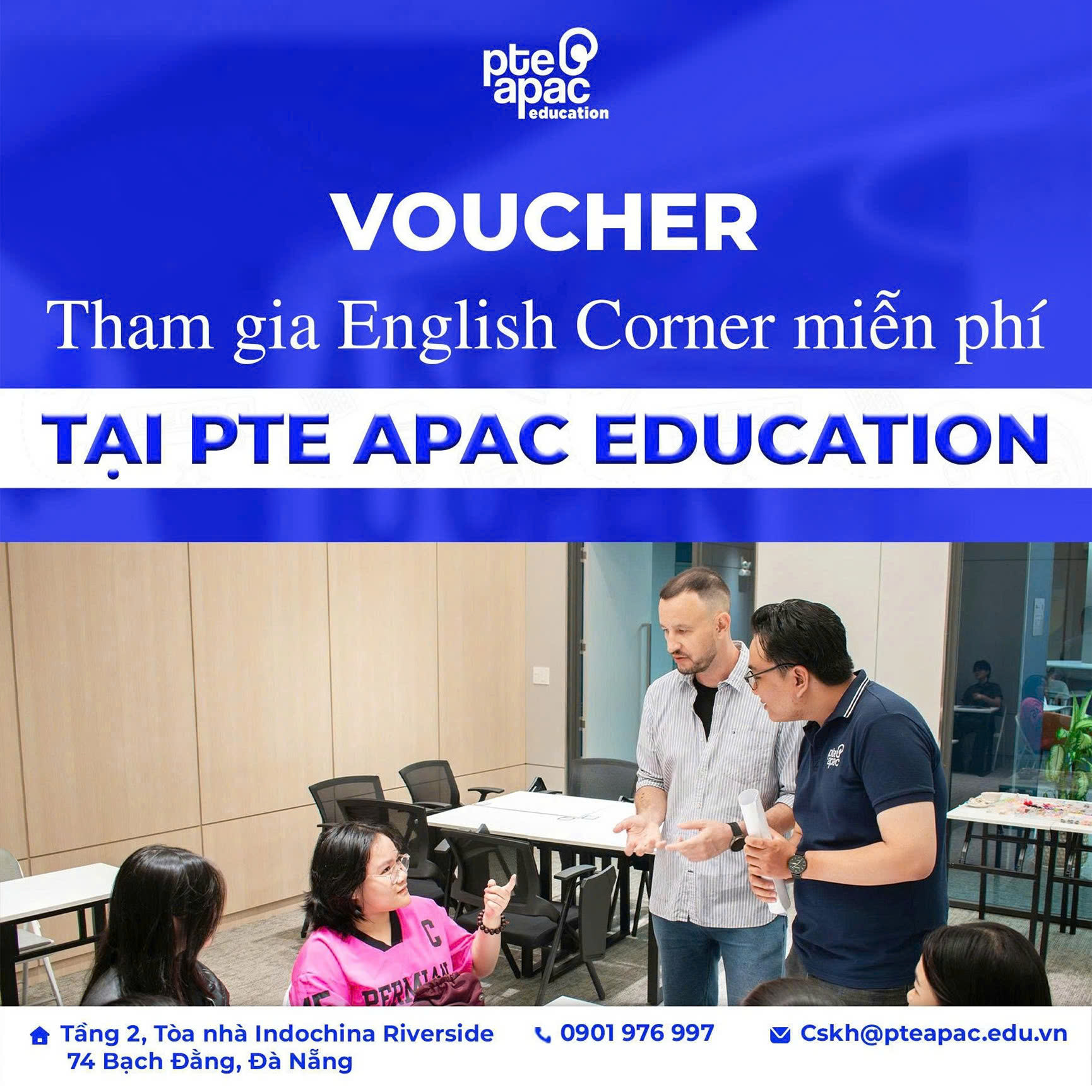 Voucher tham gia English Corner miễn phí (trị giá 500,000đ) tại PTE APAC Education